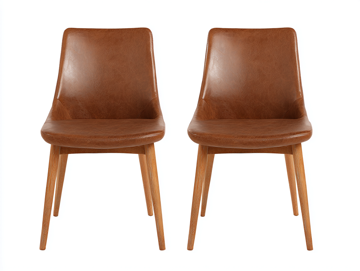Sedia da pranzo-pelle sintetica-legno-54x58x85 cm-marrone-stile moderno